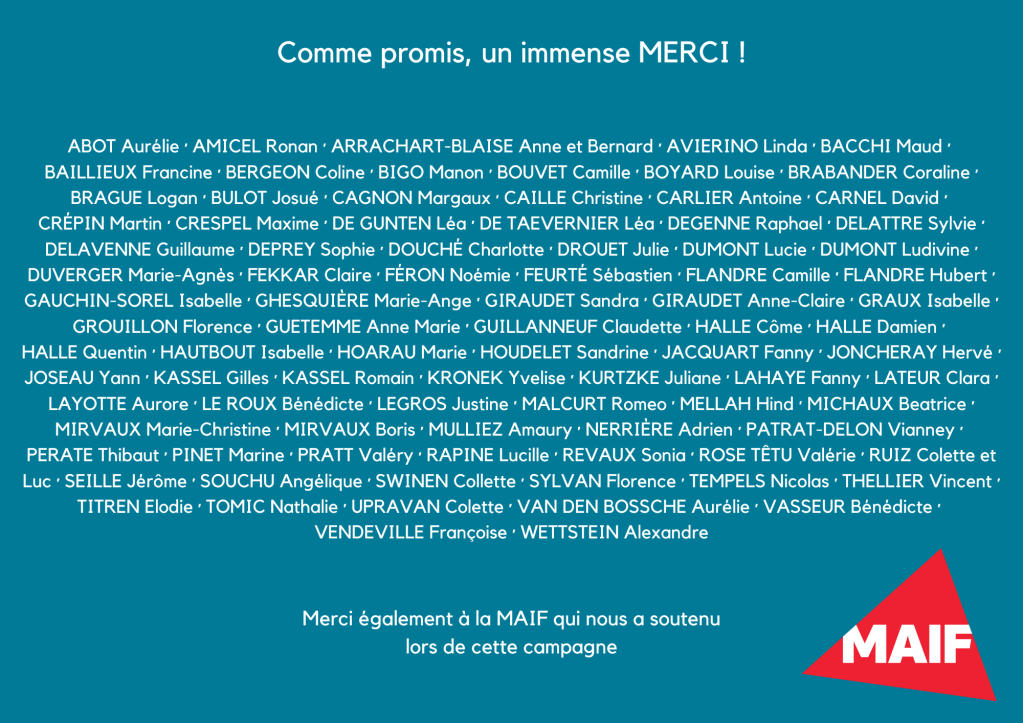 Vous avez participé à notre campagne et grâce à vous, nous avons atteint notre objectif : collecter 11 545 €.